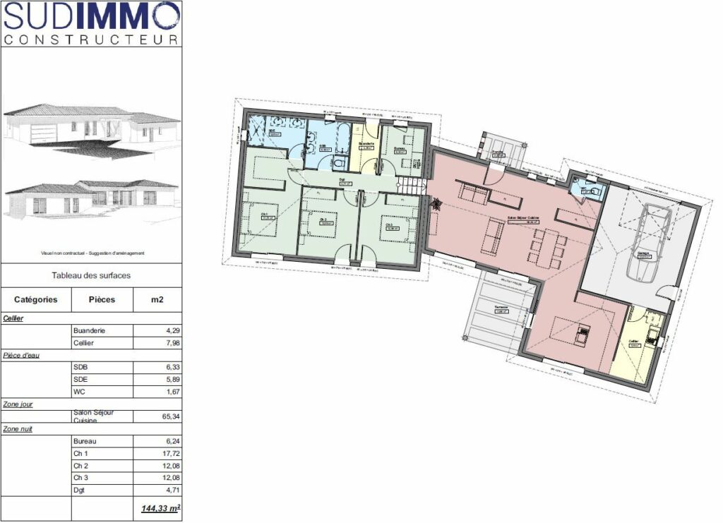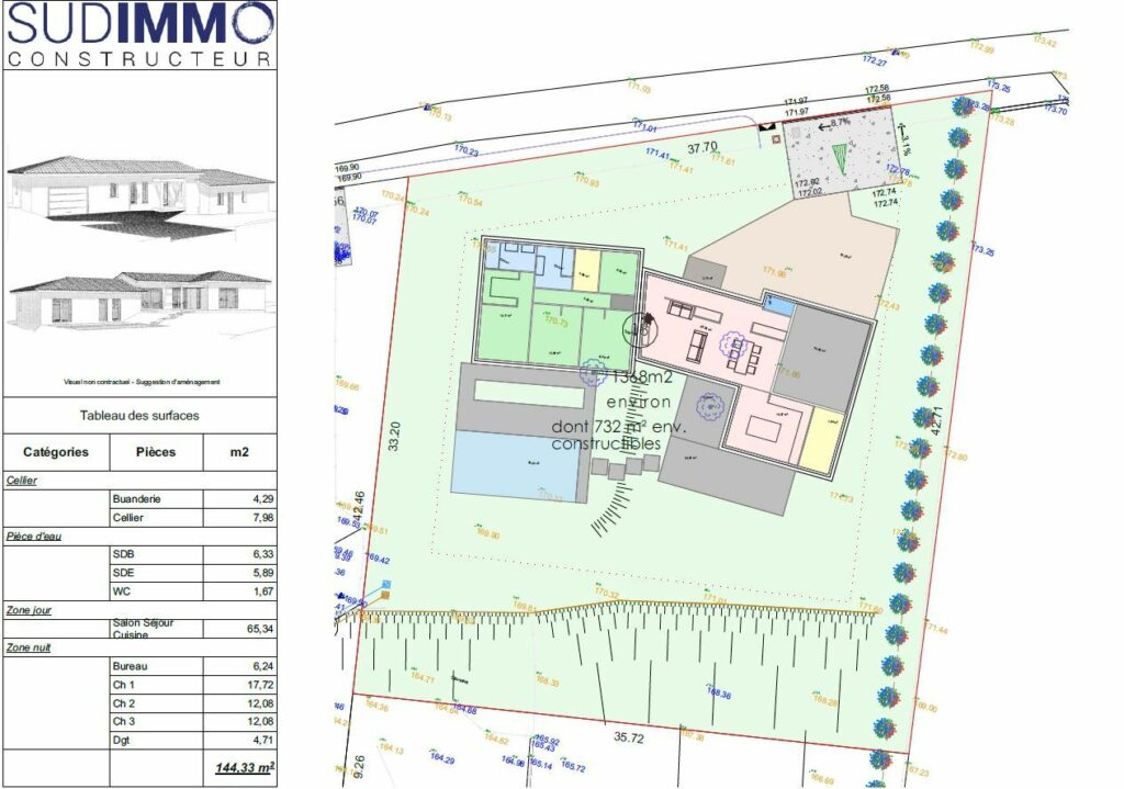 Nous ne vendons pas le terrain, nous proposons le projet de construction suivant avec garanties dans le cadre d’un contrat de construction de maison individuelle.